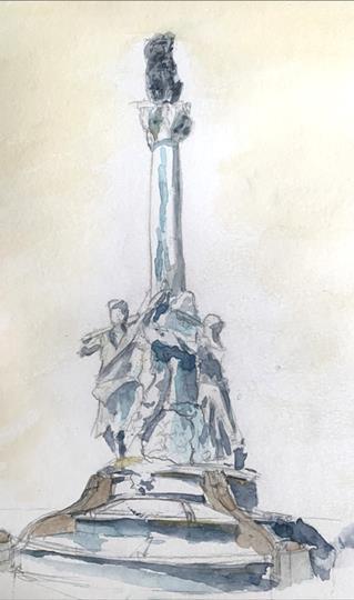 This was another two-part project. In the first part, we were tasked with creating an analytique of the Liberty Memorial World War I Museum in downtown Kansas City. This analytique was to be our first graphite rendering, and we first produced a half-scale version of what our final would be, both in design and rendering.