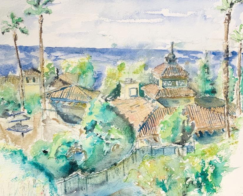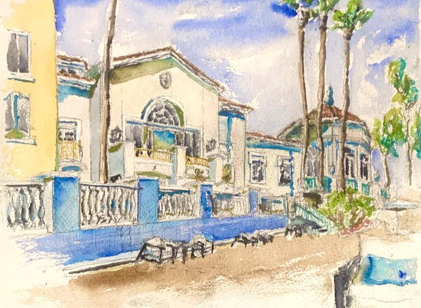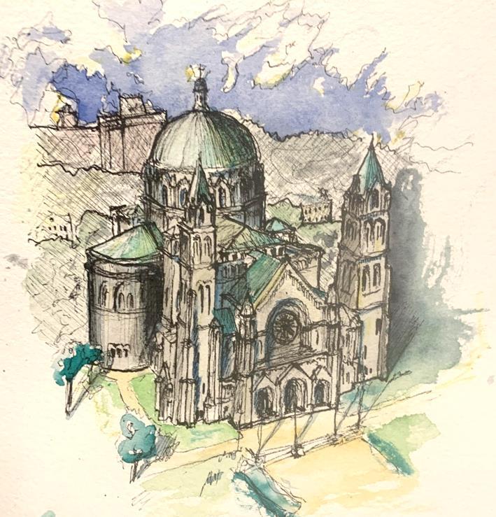 Our Lady of Refuge Catholic Retreat Center, full block of drawings. Watercolor wash and graphite.