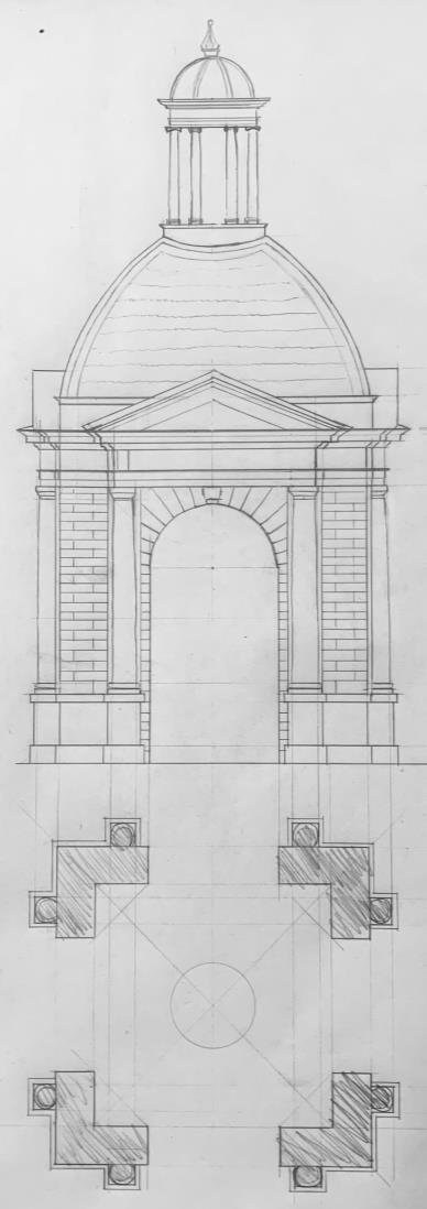 For this project, we were tasked with designing a house for the family of Charles Carroll, Catholic signer of the Declaration of Independence. This project was our first residential design. The site of the house is the site of the current Charlcote House in Baltimore, Maryland. It was to be a monumental home and needed to include a chapel and a shrine to the signer.