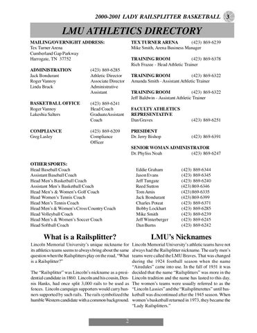 LMU ATHLETICS DIRECTORY TEX TURNER ARENA (423) 869-6239 Mike Smith, Arena Business Manager