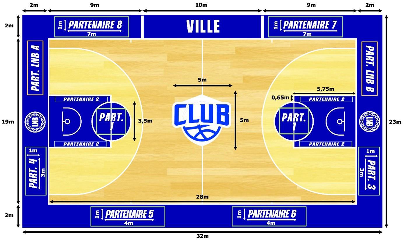 Les emplacements partenaires 1 à 8 sont à disposition des clubs pour y afficher leur(s) partenaire(s). Les emplacements A et B sont réservés à la LNB.
