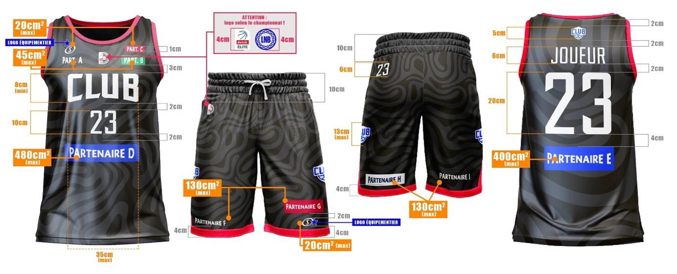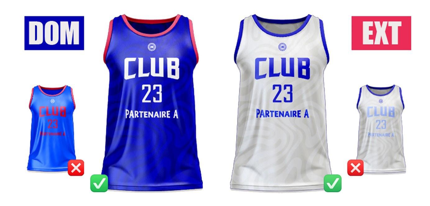 Avant le 1er octobre, chaque club de première division doit fournir à la LNB six (6) tenues officielles domiciles selon la répartition suivante : deux (2) maillots en taille S, deux