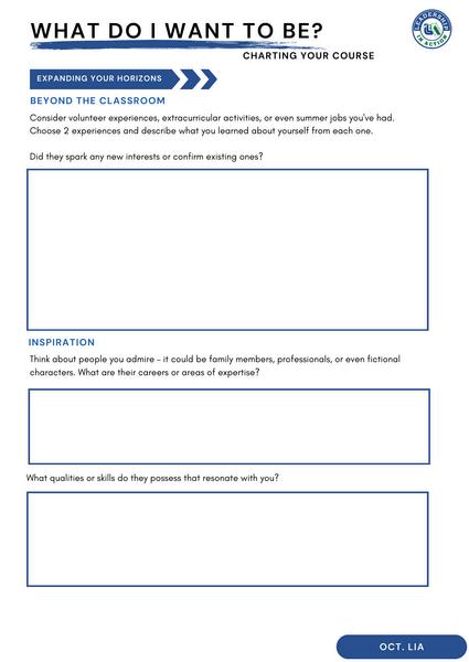 Junior LiA Project: Students will create a presentation outlining three potential postgraduation plans. This includes identifying their career interests, researching specific colleges, majors, or vocational paths, and setting their goals for life after high school. This project encourages students to think critically about their future, helping them articulate their aspirations and the steps needed to achieve them.