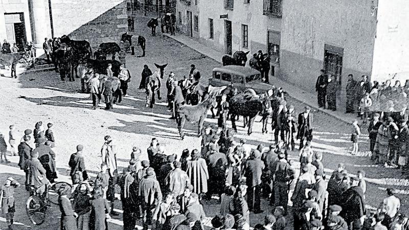 Certamen de burros garañones en la plaza Mayor de 1942. L.N.C.