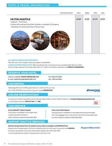 HOTEL & TRAVEL INFORMATION (RATES ARE PER NIGHT)