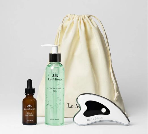 The ThermaLift Home Care Kit by Le Mieux offers a complete sculpt-andsoothe ritual featuring a potent growth-factor serum, calming O2 gel, and the Gua Sha ThermaLift tool (with microvibration, LEDs, and heat) to maintain that rejuvenated, contoured look from the comfort of home.
