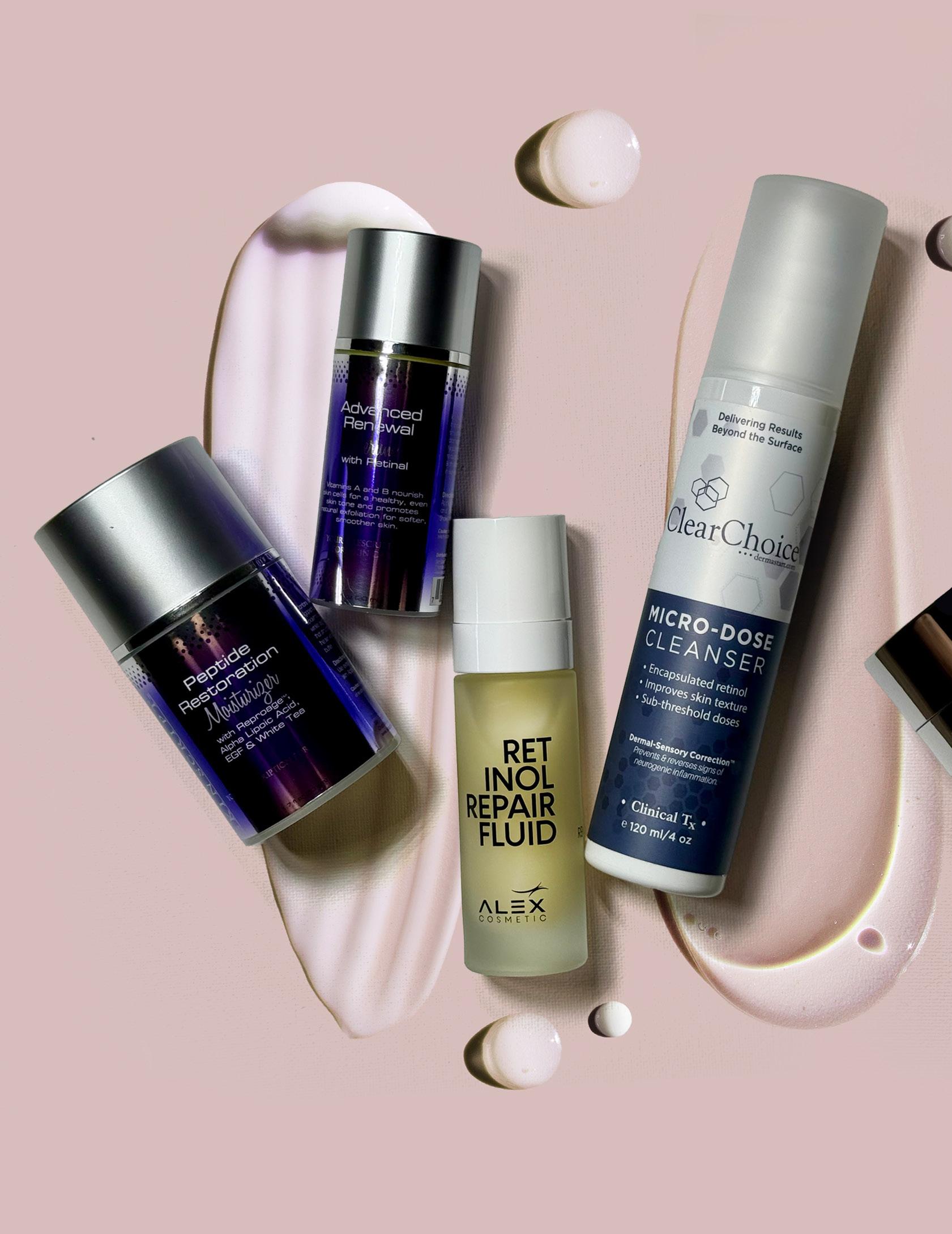 LED light therapy, particularly in the red (630–660 nm) and near-infrared (830–880 nm) spectrum, offers a non-invasive way to stimulate collagen by energizing mitochondria within fibroblasts, boosting ATP production, and enhancing protein synthesis. Radiofrequency treatments use controlled thermal energy to heat the dermis to around 40–42°C, which contracts existing collagen fibers and prompts fibroblasts to produce new ones. When combined with microneedling, RF offers both thermal and mechanical stimulation for advanced tightening and rejuvenation. Homecare is an essential part of any collagen-support strategy, and it starts with the right ingredients. Vitamin C is a non-negotiable, as it is a critical cofactor in collagen synthesis and a potent antioxidant that defends against UV and pollution-induced free radicals. Peptides act as signaling molecules, directing fibroblasts to ramp up production, with examples like palmitoyl pentapeptide-4 and copper peptides being particularly wellstudied. Retinoids, including retinol and retinaldehyde, stimulate fibroblast activity, normalize keratinocyte turnover, and encourage collagen remodeling. Hydration is equally important, as fibroblasts function best in a well-hydrated environment; hyaluronic acid supports extracellular matrix volume, keeping skin plump and supple. Additional antioxidants such as resveratrol, green tea extract, and CoQ10