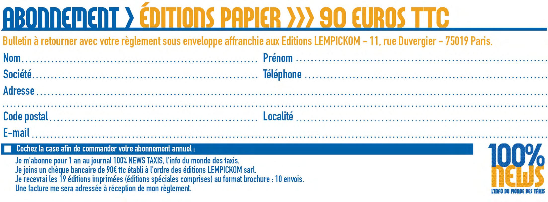 Abonnez-vous à la newsletter 100% NEWS TAXIS