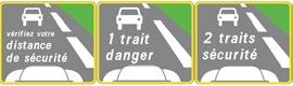 Sur autoroute, laissez un écart de 2 lignes de bande d’arrêt d’urgence, soit environ 90m.