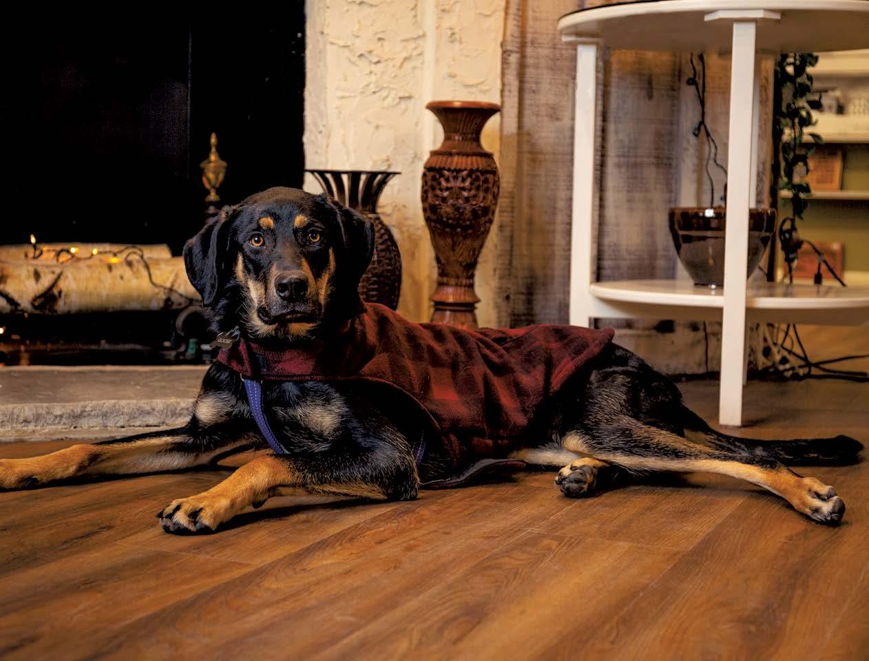 Bunyaad’s director of stain resistance, a 3-year-old schnoodle named Wally, “does most of his work at home,” Leister says. “He specializes