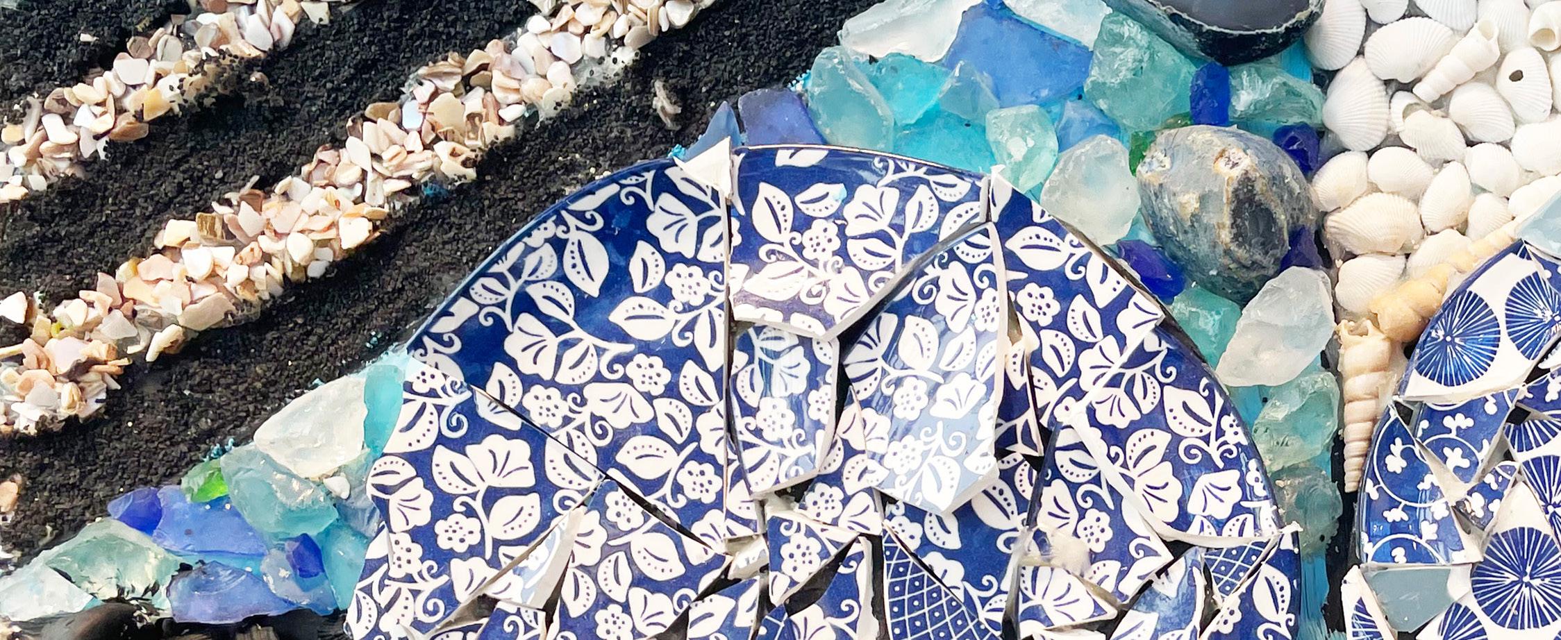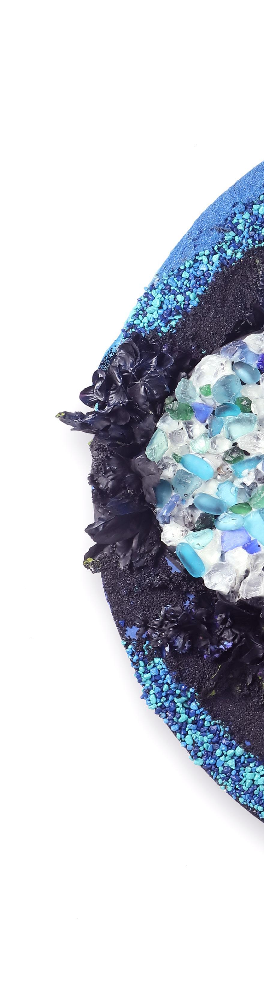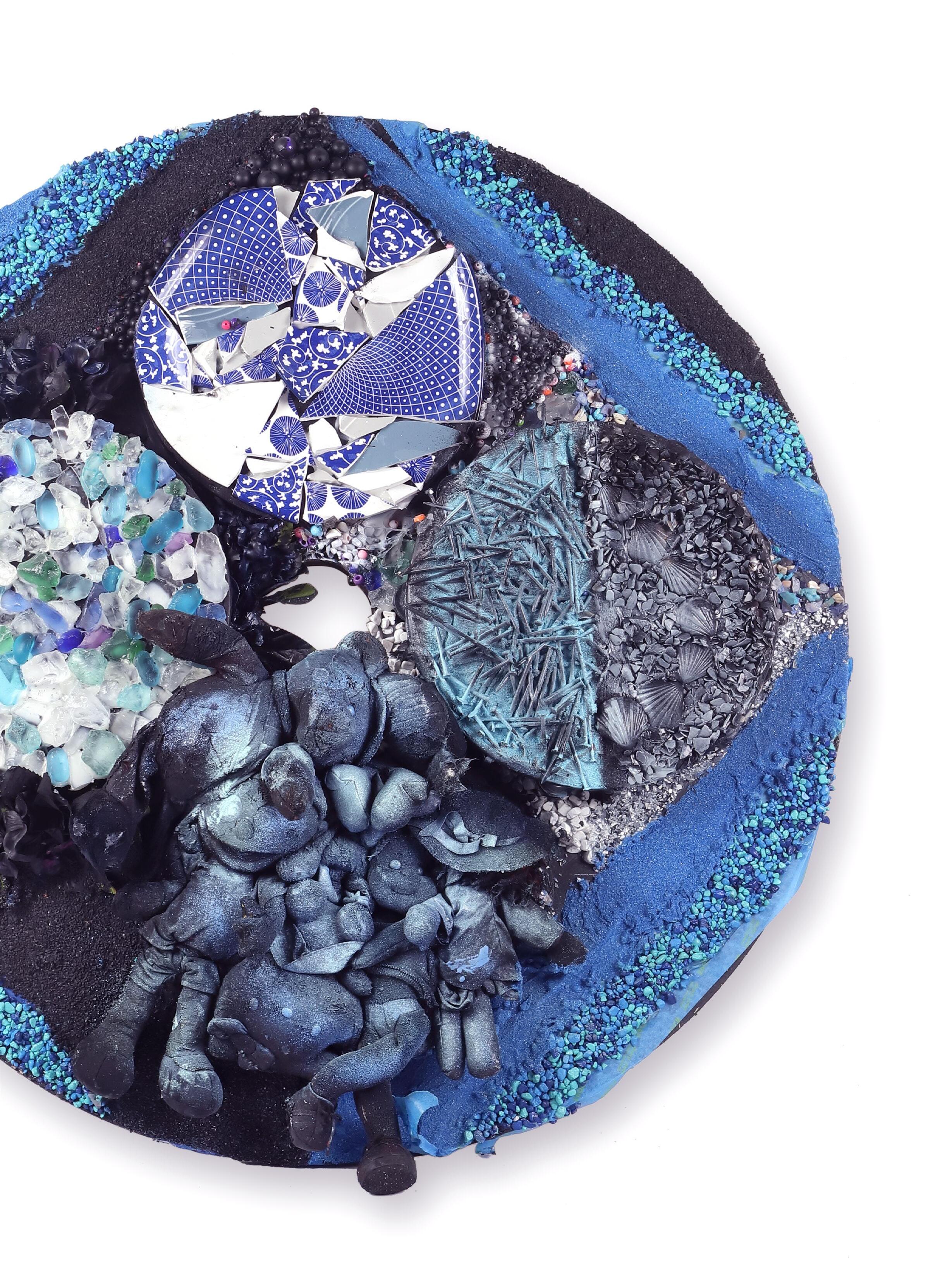 2024, seaglass, acrylic on wood, 12 ½ (31 cm.) inches diameter