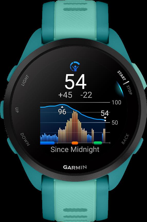 Fortsæt! Tilmeld dig det løb og træn fremragende med det brugervenlige Forerunner 165 GPS løbesmartwatch. Med pace, distance og puls vil du se dine fremskridt skinne på urets AMOLEDtouchscreen, mens Garmin Coach og adaptive træningsplaner hjælper dig med at forfølge dine mål. Vågn op til din morgenrapport med en oversigt over søvn, restitution og træningsudsigter (de viste data er beregnet til at være en nøje estimering af registrerede målinger). Brug træningseffekt og træningseffektetiketter til at se, hvordan din træning påvirker din form, og forstå den primære fordel opnået fra din træning. Derefter kan du tjekke restitutionstiden for at vide, hvor lang tid du skal tage det roligt mellem løbene. Lad musikkens rytmer skubbe dig fremad med indbygget musiklagring uden telefon. Par dit ur med din smartphone, og dine meddelelser vises direkte på dit håndled. Få et komplet billede af din sundhed, ikke bare et glimt, fra dit Forerunner 165 Music smartwatch, med op til 11 dages batterilevetid i smartwatch-tilstand.