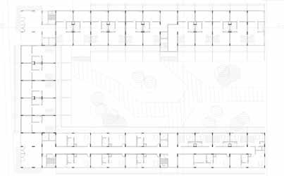 El sector para estudiantes está enriquecido con una calle corredor que balconea al patio central, propiciando el intercambio entre estudiantes que se apropien de dicho espacio como extensión de las unidades.