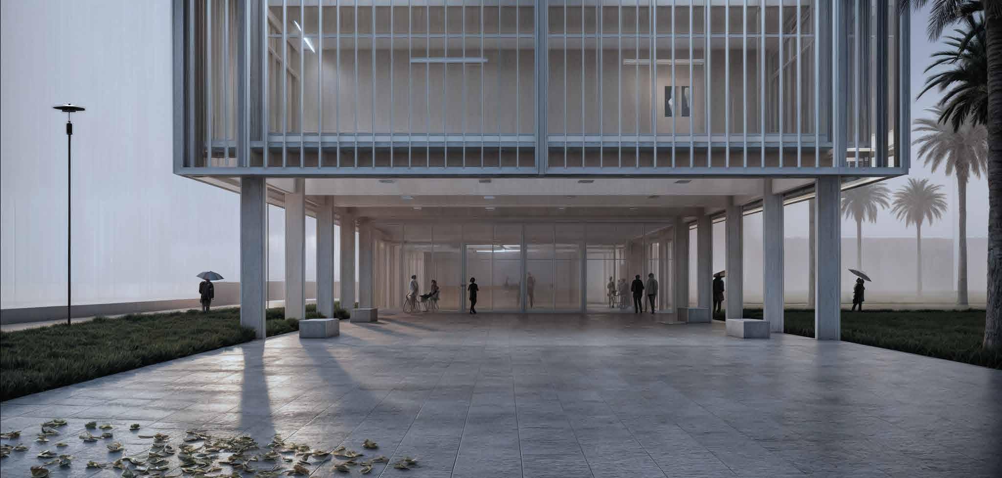 Se busca una integración respetuosa mediante una materialidad sobria y una volumetría clara, minimizando el impacto visual sobre el entorno inmediato. La continuación de la rambla y la incorporación de un pasaje hacia una de las estructuras existentes refuerzan la relación entre el nuevo equipamiento y el tejido urbano circundante. El desarrollo del proyecto responde a la necesidad manifestada por la comunidad local en distintos censos y encuestas, donde se ha expresado un gran interés en la creación de un espacio cultural y educativo en esta zona.