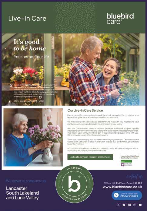 If you’d like to know more about livein care, just call us on 01524 388829 and ask for a brochure. Or visit our website www.bluebirdcare.co.uk/ lancaster-south-lakeland