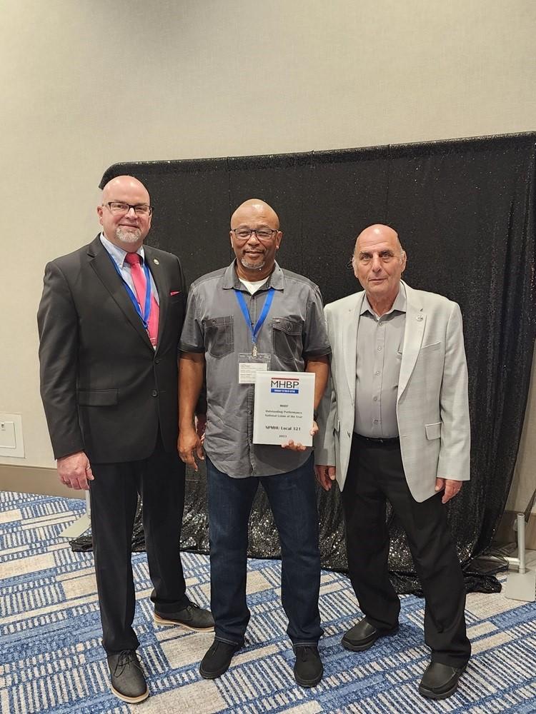 From (l-r) National Secretary-Treasurer Kevin Tabarus, Local 321 President Errol “Tony” Wilson & NPMHU National President Paul Hogrogian