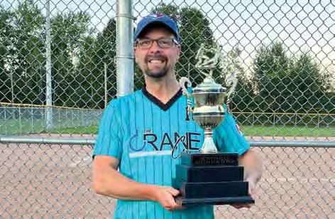 e won the championship! This was my second year playing softball on a team from Huntsville, and after finishing third last year, we got it done this year in the season-ending tournament. It was a slugfest in the championship game, a 25-12 win. Already down two players, we lost two more to injury and I even had to play through a broken finger in the last two innings. I finished with a .714 batting average for the tournament, not bad for the secondoldest guy on the team! I felt a little bit like Babe Schneider of the Blue Jays. I played short ball—advancing runners with a single just past the infielders. It was an honour to play my part in helping our team succeed.