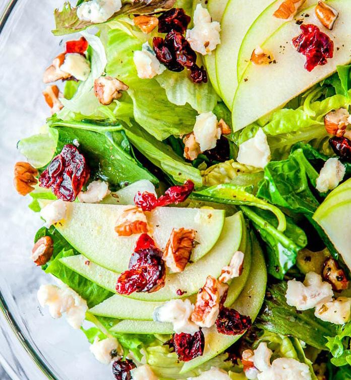 Bring a fresh crunch to your table. Thinly slice two crisp apples and toss them with mixed greens, toasted walnuts, and crumbled blue cheese. Whisk olive oil, apple cider vinegar, honey, salt, and pepper for a quick dressing.