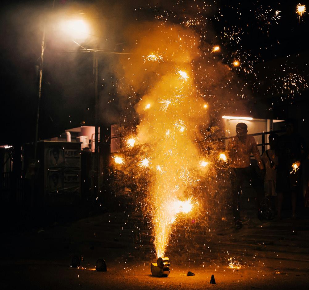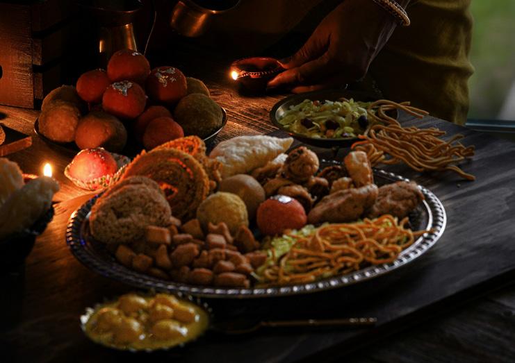 People celebrate Diwali by lighting up their homes and streets with diyas and candles, dressing up in new clothes, exchanging gifts, and indulging in delicious traditional food.