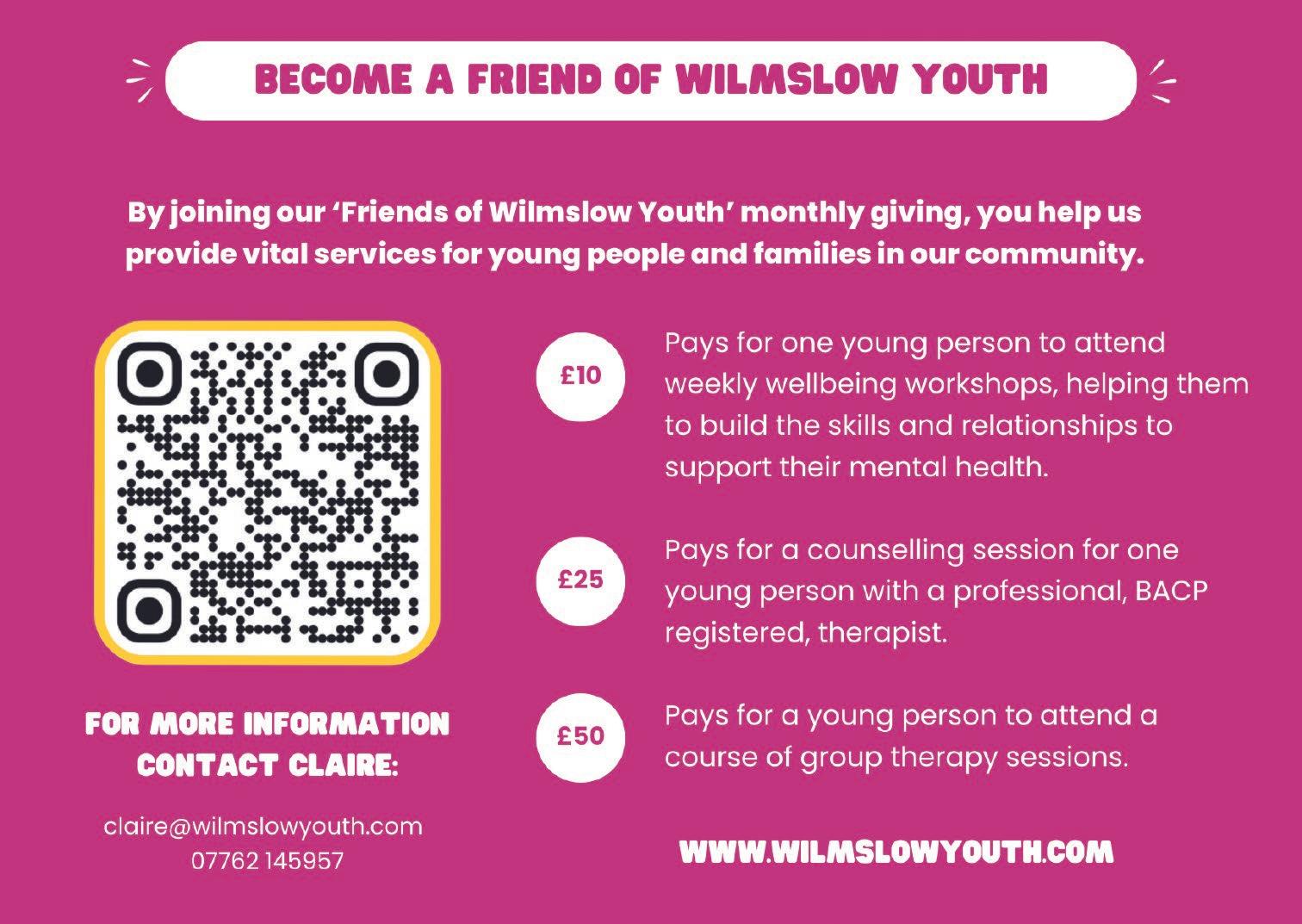 • Join us: At Wilmslow Youth, we believe connection changes lives –together, you can support our work by choosing to become our friend.