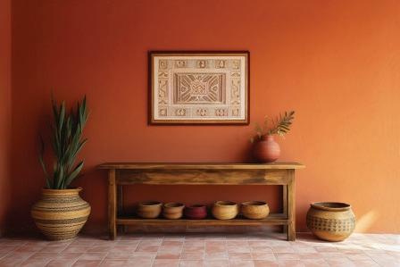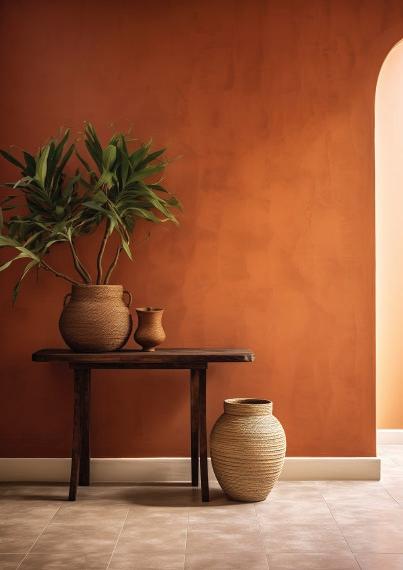 These warm, clay-inspired shades are making a strong comeback, adding a grounded, natural feel to spaces. They’re particularly popular in living areas and kitchens, often paired with natural materials like wood and stone.