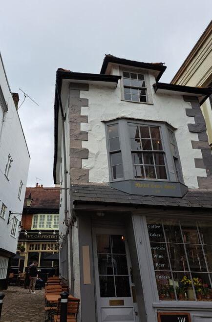 The Crooked House of Windsor, also known as the Market Cross House, or Market House, is a historic building located next door to the Guild Hall on the High Street in the centre of Windsor. Its origins date back to the late 16th century, and its crooked appearance is a result of the timber frame construction methods common during that time.