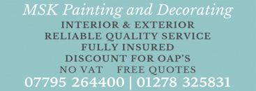 Contact Cheryl Tel 01278 781544 Mob 07840 350334