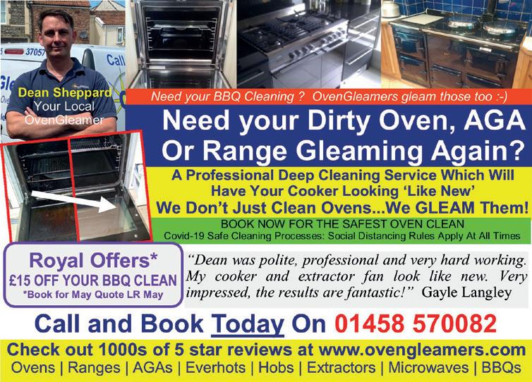 TO ADVERTISE CALL 01458 555503 www.localreach.co.uk|9 LOCALREACH Visit: www.avonmaterialsupplies.co.uk Call: 01749 830688 6 & 8 YARD SKIPS SAME DAY DELIVERY (STA) 2 WEEK HIRE INCLUDED WAIT & LOAD SERVICE ALL WASTE TYPES SKIP HIRE Somerset ‘GLAS’ USE CODE: FOR 10% OFF ONLINE* *Offer is subject to T&Cs and is only valid on your first online order on www.avonmaterialsupplies.co.uk. For further details, please call 01749 830688 • Walk in showers and baths • Waterproof wall panelling • Slip resistant safety flooring • Grab rails, shower seats & raised toilets info@ahminstallations.co.uk www.ahminstallations.co.uk *Terms and conditions apply, visit our website for more details. • Discounts for over 60s and EX Service personnel • Charity work and grants 02382 543308 Call for friendly advice and free survey and quote • Walk in showers and baths • Waterproof wall panelling • Slip resistant safety flooring • Disabled Facilities Grants • Discounts for over 60s SSAFA and Ex Service personnel • Family Run Call for our friendly advice, free survey and quote info@ahminstallations.co.uk www.ahminstallations.co.uk *Terms and conditions apply, visit our website for more details. 01458 550445 Wet rooms Walk in showers and baths Waterproof wall panelling Slip resistant safety flooring Grab rails, shower seats & raised toilets Bathing a problem? – we can help FREE* Georgia toilet basin with every bathroom order info@ahminstallations.co.uk www.ahminstallations.co.uk Terms and conditions apply, visit our website for more details. • Disabled Facilities Grants • Discounts for over 60s and EX Service personnel • Charity work and grants 02382 543308 Call for friendly advice and free survey and quote Bathing a problem? We can help FREE* Mirrored cabinet or high raised toilet with any full bathroom installation