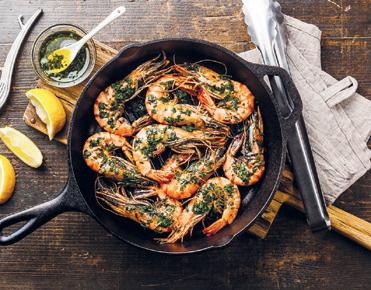 Mix the lemon juice with the garlic, herbs and butter to form a paste. Season well with salt and pepper and spread the paste over the prawns. Leave to marinate for 30 minutes.