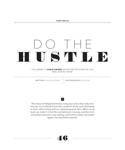 HUSTLE T H E A G E N C Y ’ S C R A I G K N I Z E K D I S H E S O N T H E S TAT E O F L A’ S R E A L E S TAT E S C E N E