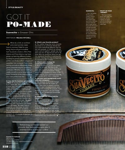 GOT IT PO-MADE Suavecito is Greaser Chic WRITTEN BY: MELISSA MITCHELL