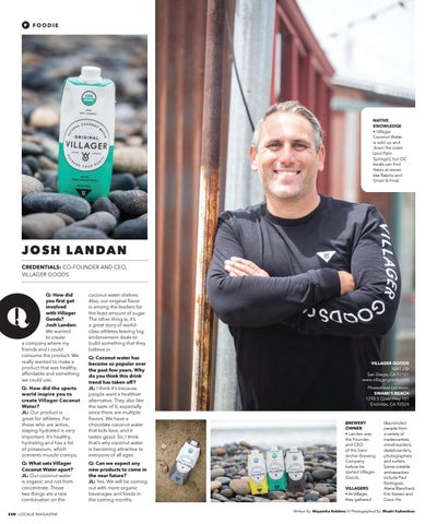 J O S H L A N DA N CREDENTIALS: CO-FOUNDER AND CEO, VILLAGER GOODS Q: How did you first get involved with Villager Goods? Josh Landan: We wanted to create a company where my friends and I could consume the product. We really wanted to make a product that was healthy, affordable and something we could use.