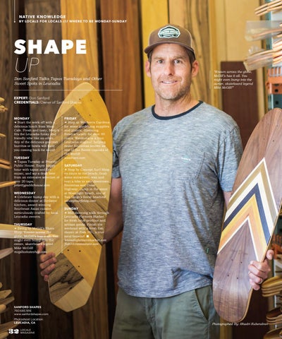 MONDAY ¢ Start the week off with a delicious lunch from Mozy Cafe. Fresh and tasty, Mozy’s fits the Leucadia funky and friendly vibe like no other. Any of the delicious gourmet burritos or bowls will have you coming back for more! TUESDAY ¢ Tapas Tuesday at Priority Public House. Enjoy happy hour with tapas and live music, and sip a draft beer from an extensive selection of over 20 taps. prioritypublichouse.com WEDNESDAY ¢ Celebrate hump day with a delicious dinner at Birdseye Kitchen, award-winning Southeast Asian cuisine, meticulously crafted by local Leucadia owners. THURSDAY ¢ Swing by McGill’s Skate Shop. Known across the globe, McGill’s has it all. You might even bump into the owner, skateboard legend Mike McGill! mcgillsskateshop.com