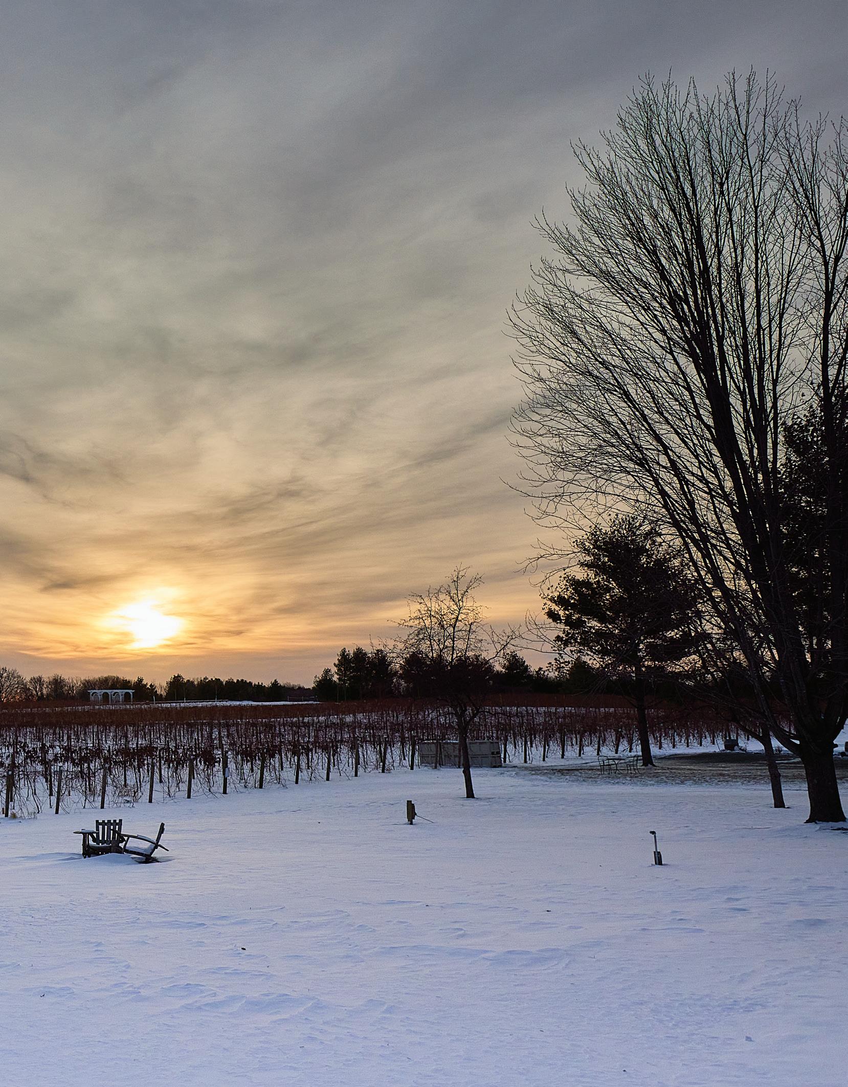 Rustic Roots Winery is open yearround—in the winter, guests are welcome to grab their snowshoes and check out the trails, or bring a sled for a ride down the sledding hill on the grounds. You can be sure they’ll have a glass of wine or a mug of hot chocolate waiting for you.