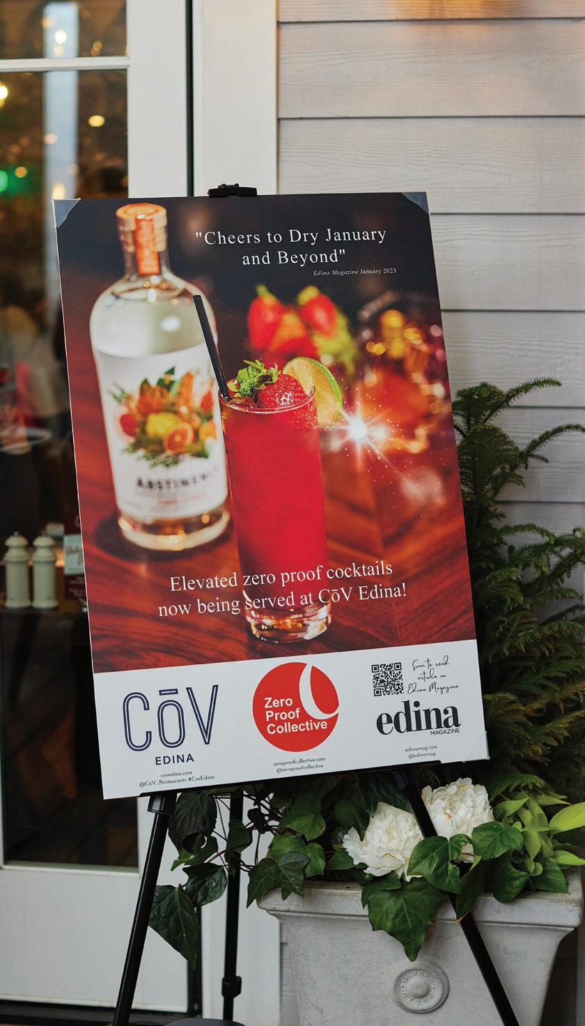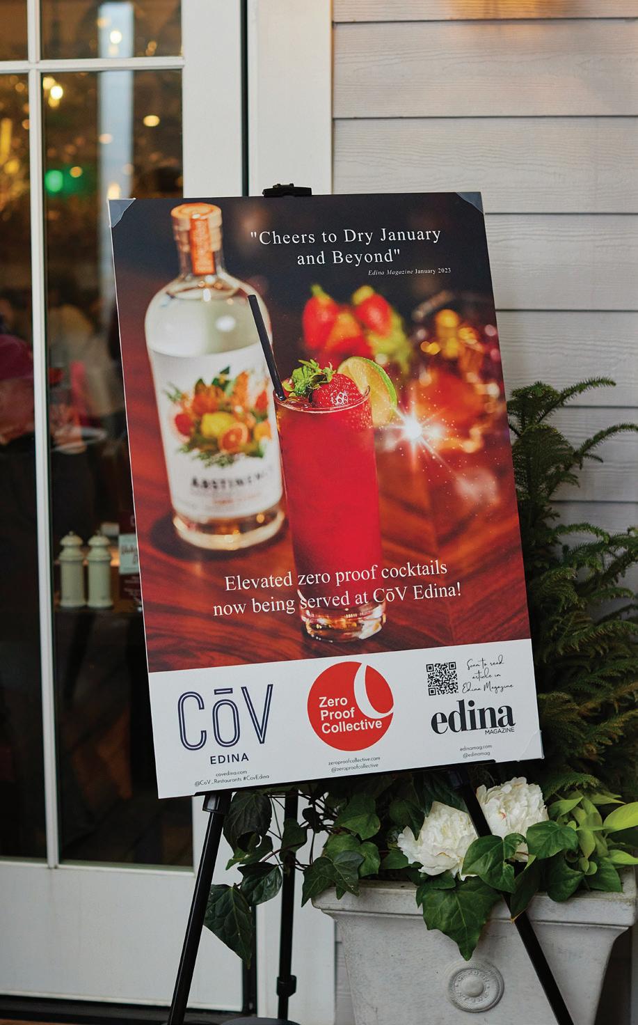 On January 20, Edina Magazine sponsored an event co-hosted by CōV Edina and Zero Proof Collective (ZPC). The gathering celebrated the launch of CōV’s year-round nonalcoholic drink menu, which includes six cocktail options. It was developed in collaboration with chef Brian Sharpe and the co-founders of ZPC, Cate Faulkner and Jen Gilhoi.
