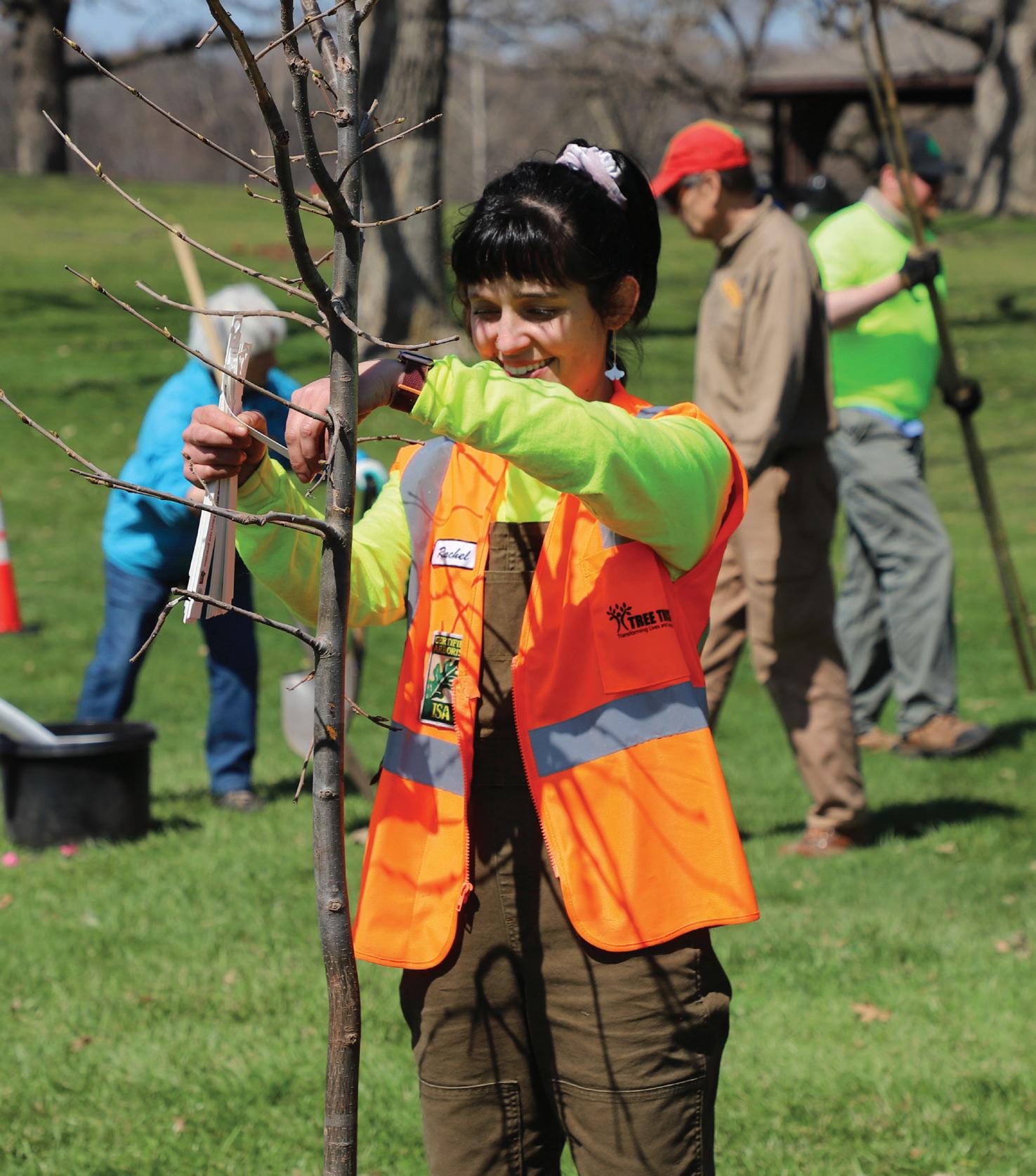 “At 12–13 percent, the southeast quadrant of the city has some of our lowest tree-canopy numbers. The average is 30 percent,” Overholt says, noting the goal of a 40 percent average tree canopy coverage across the city by 2030 per the city’s Climate Action Plan. This tree canopy inequity led Overholt to start planting in the southeast quadrant, as well as on city-owned land.