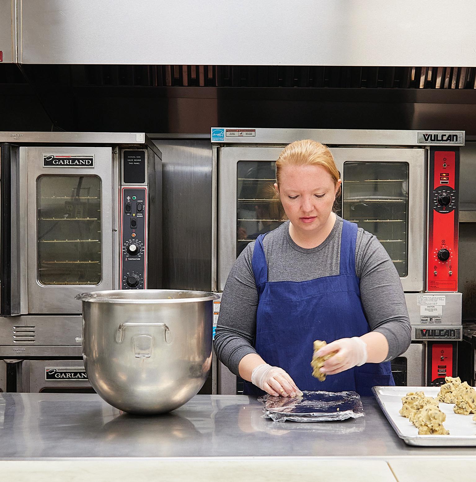 Last summer, Carmody rented space at MSP Kitchenery upwards of three times a week to make her oversized cookies— including her best-selling, half-pound OMG! Chocolate Chip Cookies—to sell at farmers markets in Plymouth, Richfield and Linden Hills, as well as local events, such as the Uptown Art Fair and James J. Hill Days. Even during the quieter winter months, Carmody still rents space at least once a week. “It’s been a game changer being at MSP Kitchenery,” she says.