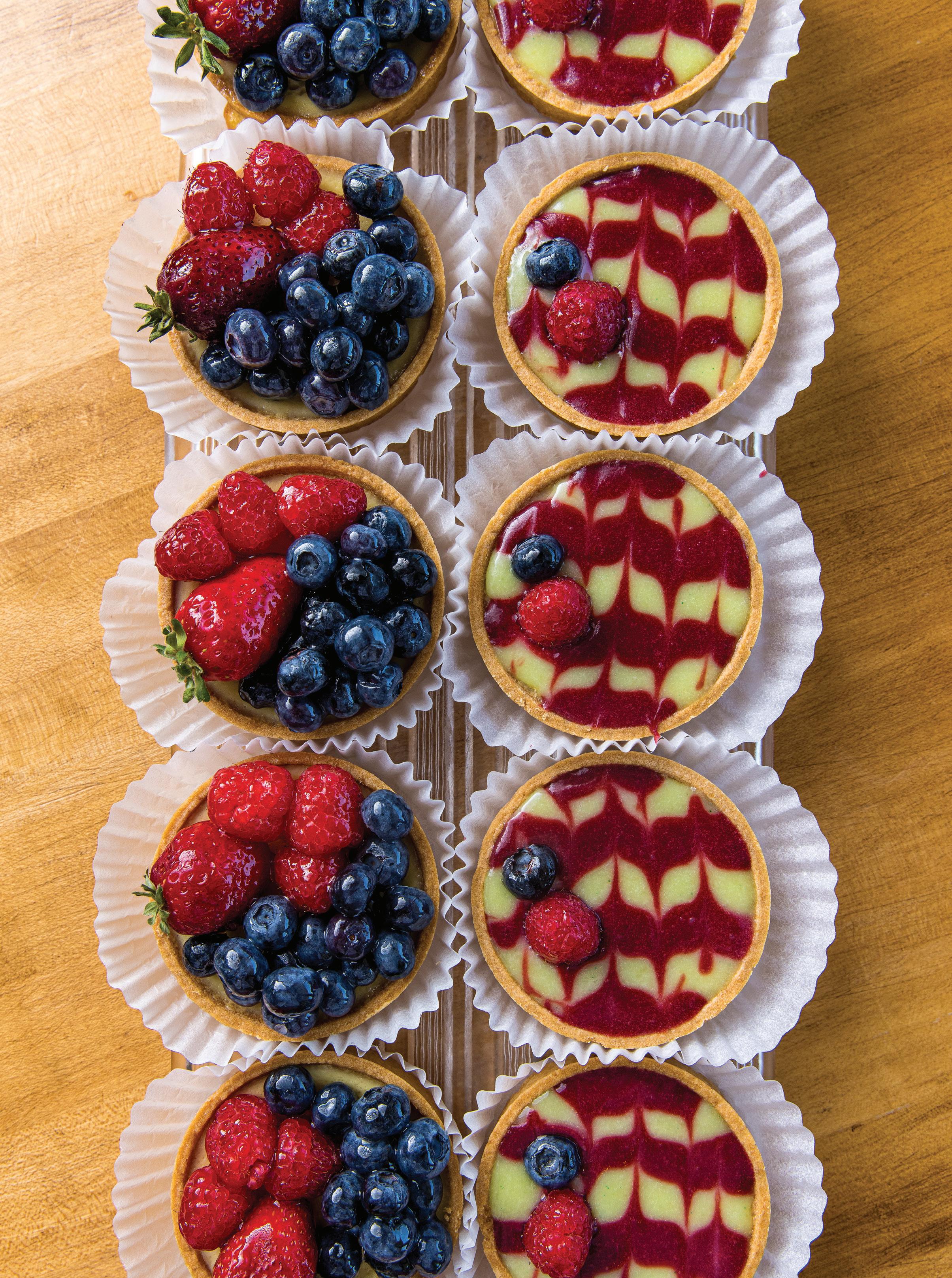 Her new landlord invited her to store her equipment at the adjacent gas sta tion, which was vacant before its own transition from Wally’s Mobil to Town Hall Station, now another immensely popular destination across the park ing lot from Patisserie Margo. And Jerry’s Foods, Bredeson’s neighbor in Grandview, welcomed her to its kitchen when the grocery store wasn’t using it (usually from 2 until 10 p.m.) so that she and her team could fill orders. “Jerry’s was so kind,” Bredeson says, noting how wonderful it is when local businesses can
