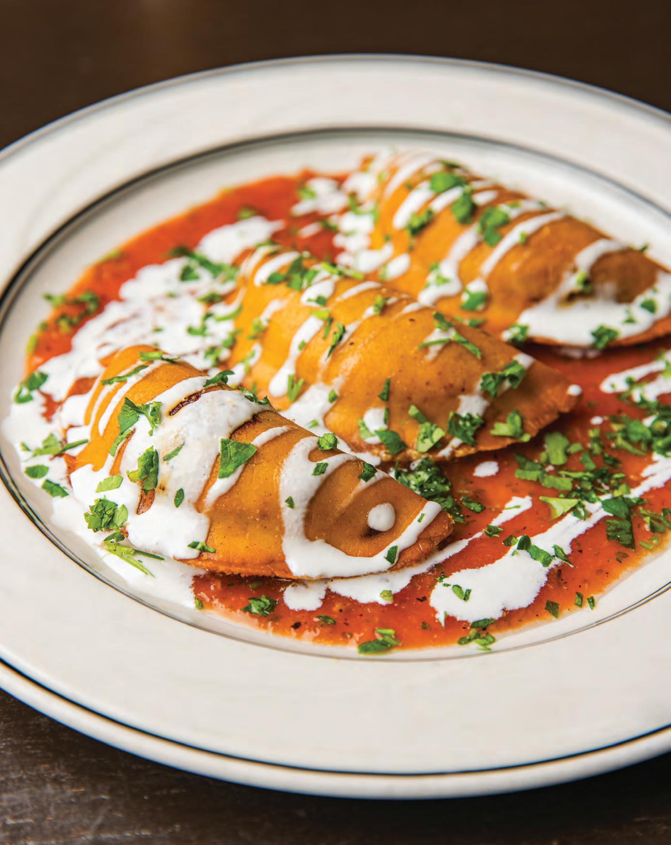 Empanada means “wrapped in bread” in Spanish. Cahill Bistro, an Ecuadorian restaurant in west Edina, is nestled into a strip mall near the intersection of Cahill Road and West 70th Street. It offers pain fried corn dough stuffed with either braised beef (Empanadas de Carne) or fresh vegetables (Empanadas Vegetarianas). Both iterations are served with roasted tomato salsa and crema casera. Martina in Linden Hills has a more fusion take on the empanada, which is stuffed with creamed leeks and Gorgonzola and served with chimichurri sauce. cahillbistroedina.com; martinarestaurant.com