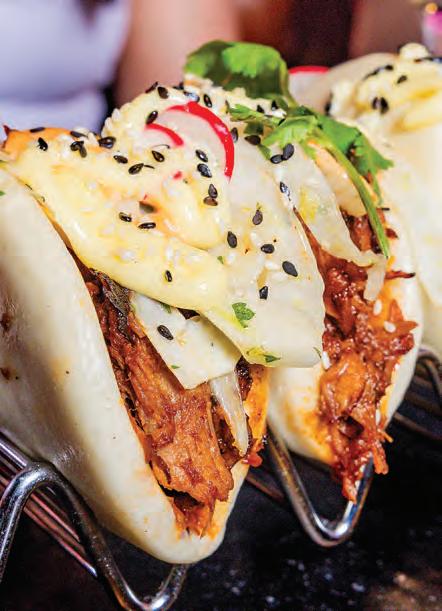 and bread-like texture. Puttshack has tasty Nashville Hot Bao Buns that have cayennemarinated house fried chicken, chipotle aioli and rainbow slaw. puttshack.com