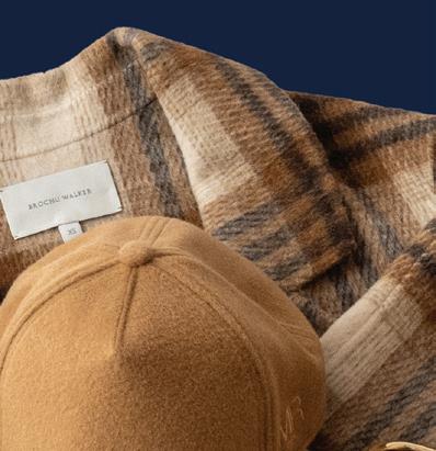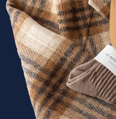 4. Brochu Walker plaid coat $578, Minnie Rose Wool baseball hat $97, Le Bon Shoppe socks $14–$16, Jenny Bird Bangle $300 Equation, 5045 France Ave.