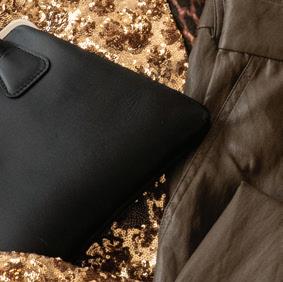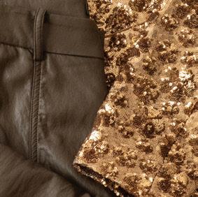 8. No 21 gold sequin jacket $1,135, Lana Bilzerian leopard cashmere knit $575, Eleh vegan trouser $230, Comme des Garçons handbag $631