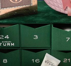 2. Green Velvet Dr. Barbara Sturm Advent Calendar $560, Charloette Tilbury Pillow Talk Icons On the Go Kit $55, Slip Pure Silk Skinny Scrunchie Ornament $29 Cos Bar Edina, 3905 W. 50th St.