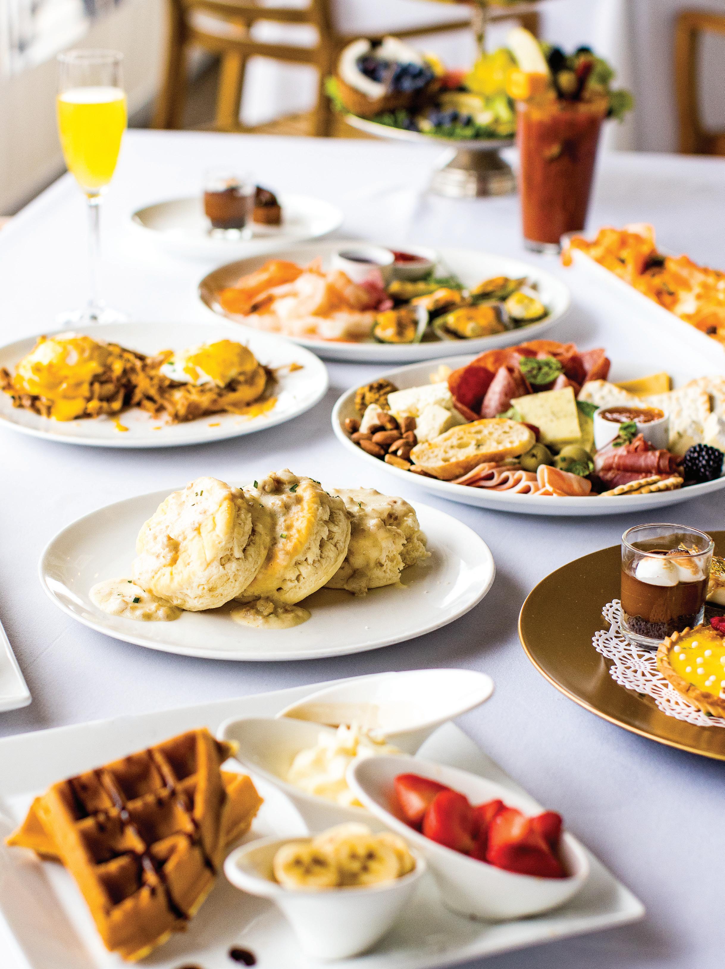 assorted desserts. Kid-friendly items include plain mac and cheese, chicken tenders and French toast. Plus, moms get a complimentary Mimosa. Price: $64.95 for adults, $19.95 for ages 5–12 and free for kids under age 5; blvdkitchen.com