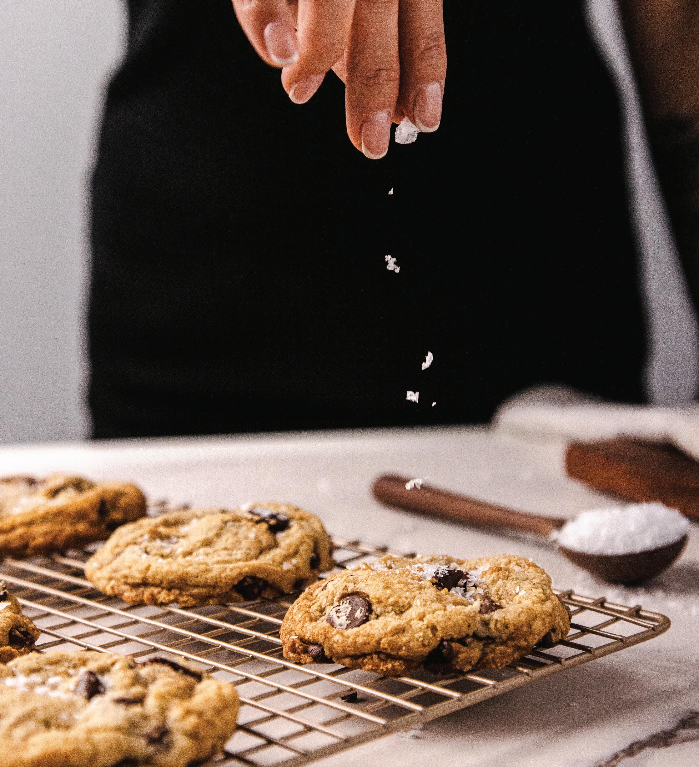 Johnson says that the key to her sweet success is three components. The first is using really good quality chocolate. “I like a blend of bittersweet chocolate and semi-sweet,” she says. She also uses brown butter in her recipe, and tops her cookies with large, flaky sea salt.