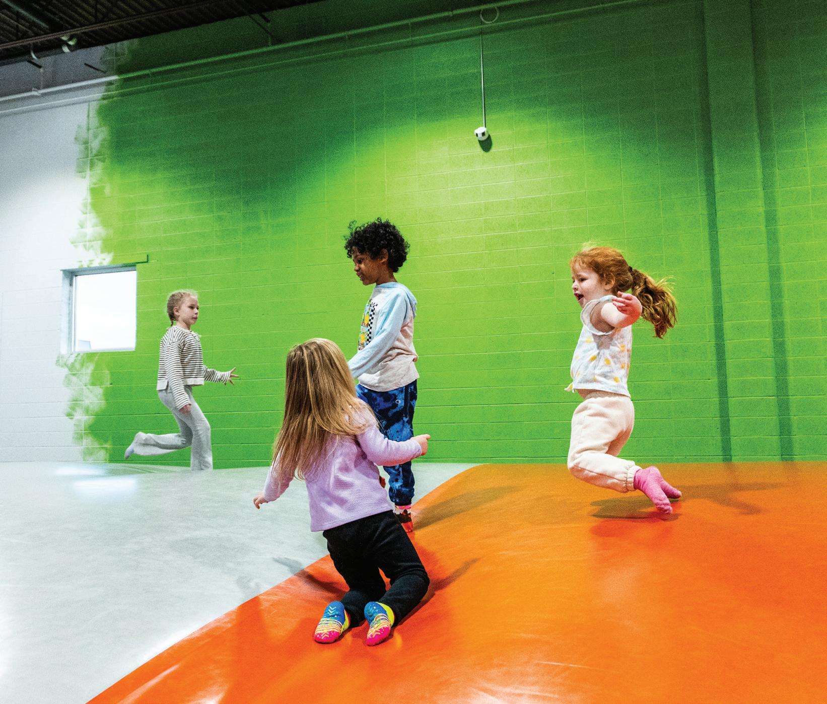 “You know what you’re coming into,” Anderson says. “You know that the equipment’s safe. You know that the area is safe. You know that your kids can’t go anywhere. And it’s a really great spot to have that one-on-one interaction with your kids. I love seeing parents run onto the jumping pillow with their kids, or try out the slides.” inneractiveplayground.com