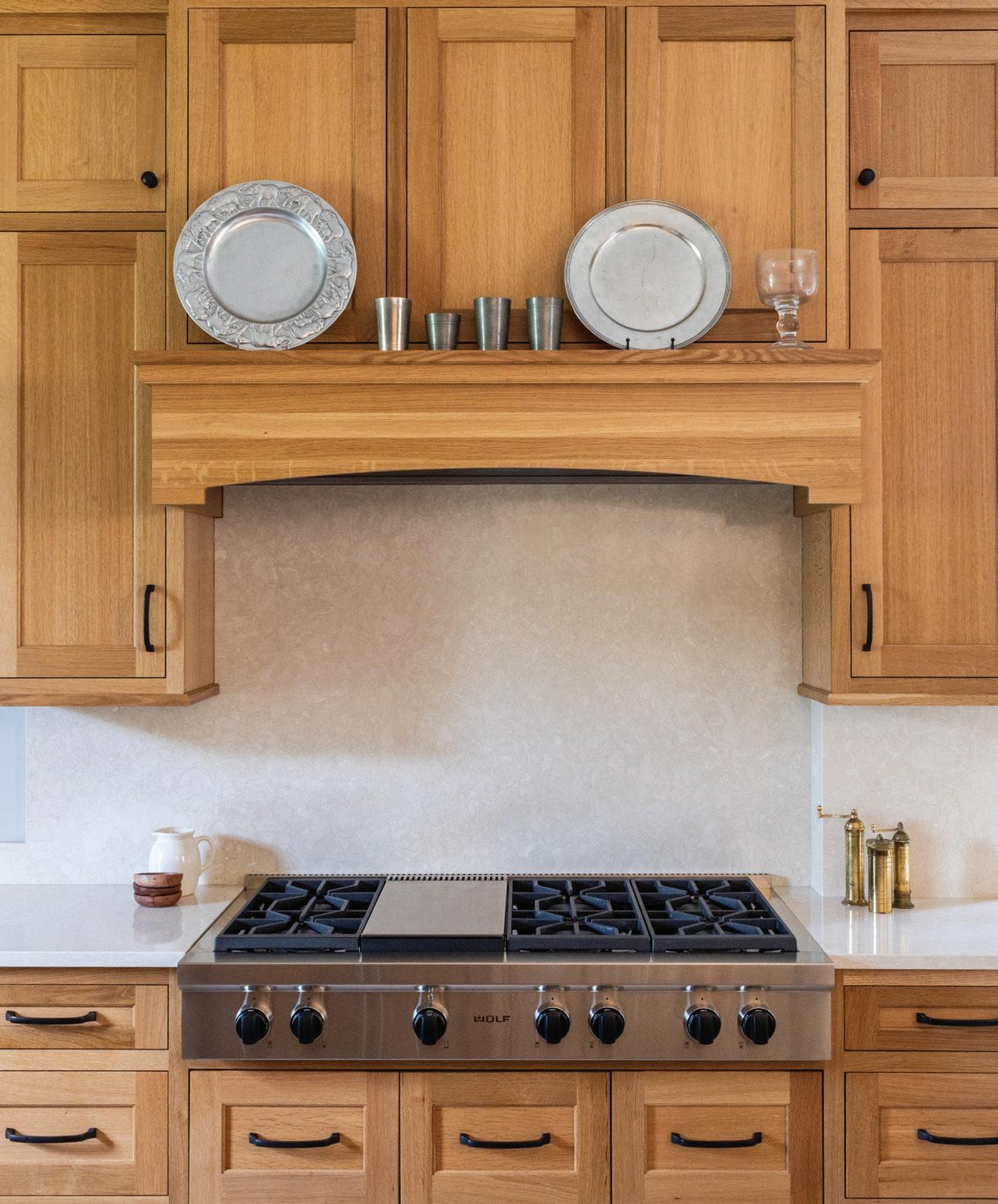 SE: Oversized hoods are popular. We see a lot of Venetian plasters and very sleek designs. We’re also seeing a soffit above the space to create a little nook. When you get into woodwork, there are so many things you can do with shapes. People are getting away from angled and tapered hoods. There are a lot of people using shiplap on it, which adds texture and clean, sleek lines.