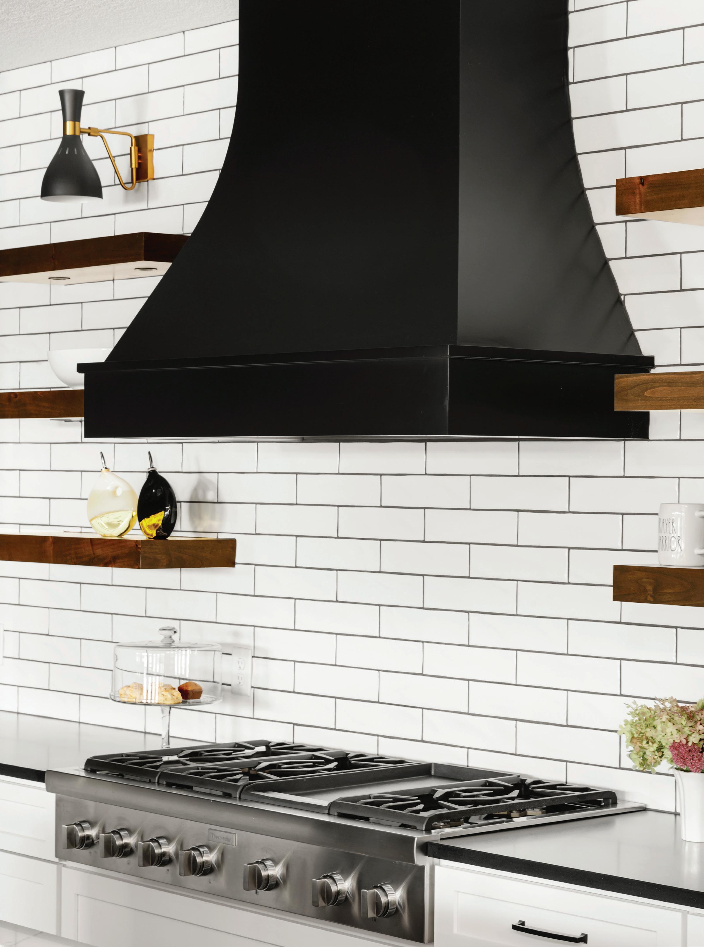 SE: A lot of simple clean lines and working with different materials can make it really a statement piece. A white hood with a band of wood around the base of it is simple, yet really adds to the look. People are also using shiplap, metal, tile, quartz, porcelain and granite. A lot of times, the hoods are custom made, and the skies really are the limit.