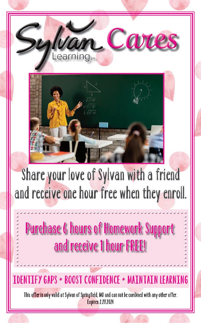 The Ozarks Regional YMCA comprises six family centers in Springfield and surrounding communities. The Y is built on programs, services, and initiatives to enable kids to realize their potential; prepare teens for college; offer families fun activities; and empower all people to maintain healthy spirits, minds, and bodies. Visit your local YMCA for a guided tour and see how you and your family can benefit at the Y. The Ozarks Regional YMCA is a nonprofit organization that believes no one should be denied access to membership and programs due to an inability to pay. These funds are subsidized through the YMCA Annual Campaign. See ad on page 23.