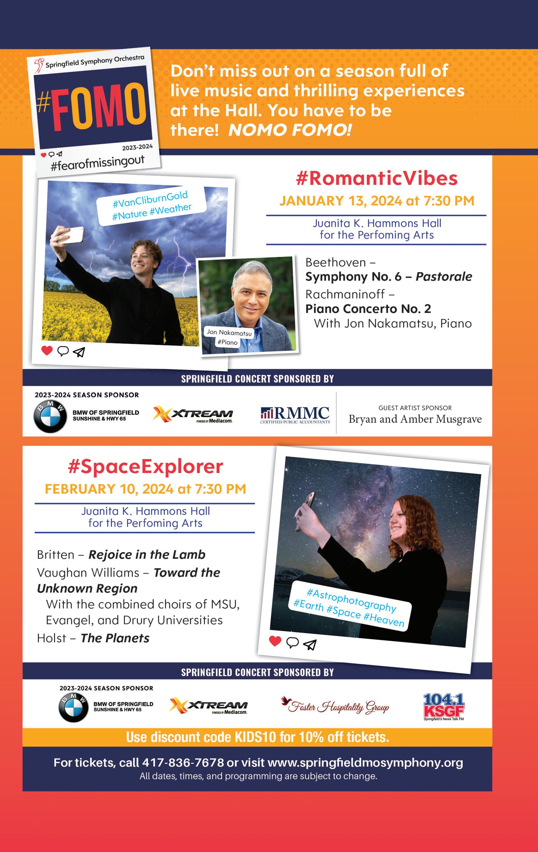 Tickets at Hammons Hall box office, 417-836-7678 or mpv.tickets.com. Performance at Hammons Hall, 525 S. Hammons Pkwy., Springfield. Symphony office: 417-864-6683 or springfieldmosymphony.org See ad on page 21.